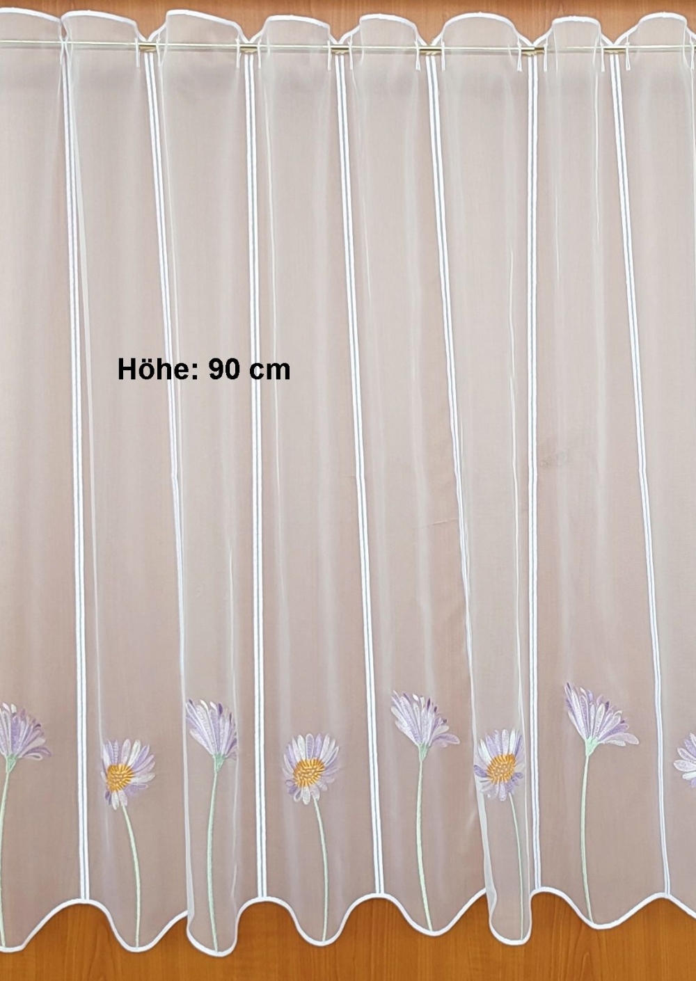 Die Gardine ist ohne Nähen dekorationsbereit, problemlos kann der Zuschnitt jeweils zwischen den einzelnen Rapporten erfolgen.