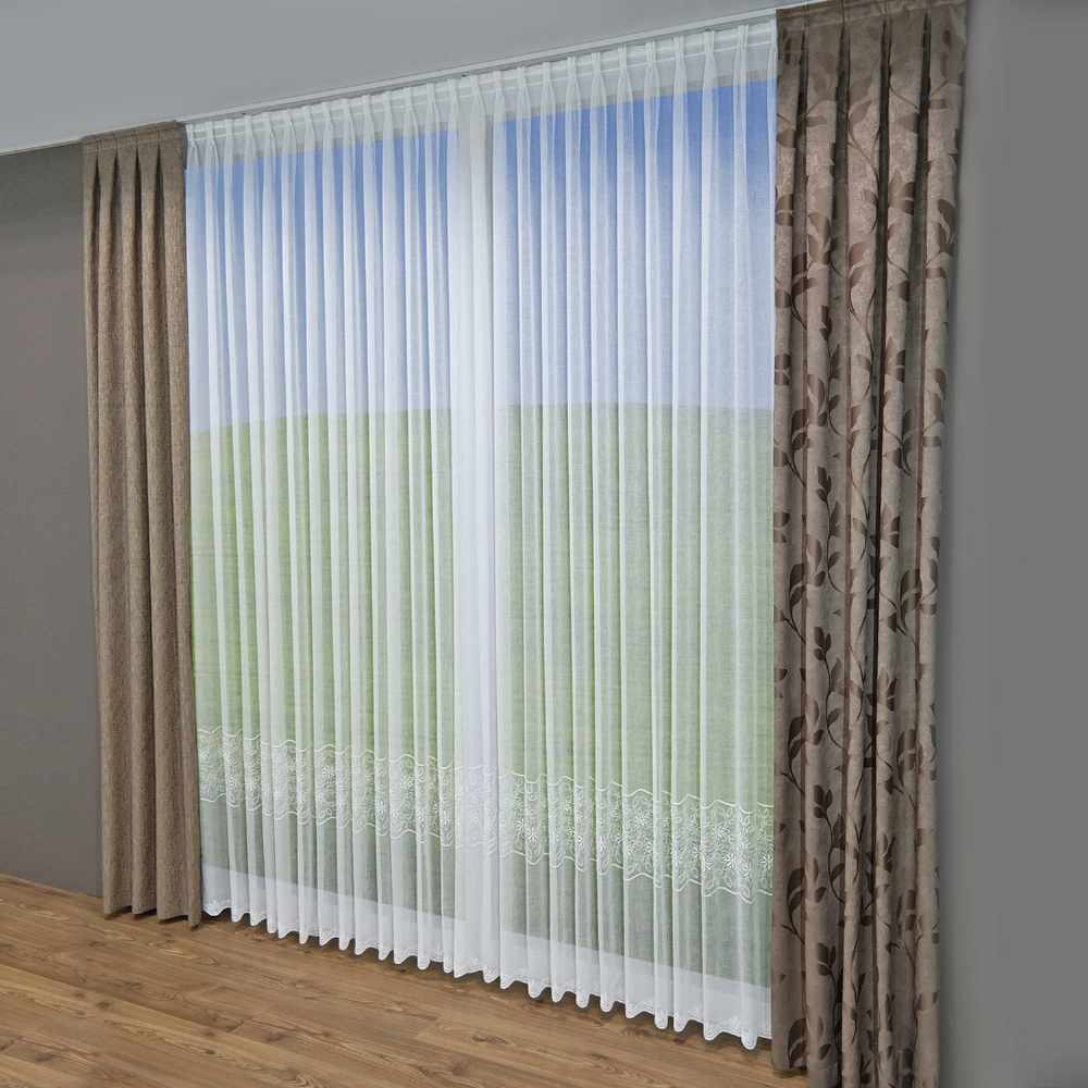 Sie berechnen Ihren Stoffverbrauch, indem Sie Ihre Fensterbreite mit dem Verhältnis Ihres Faltenbandes multiplizieren.