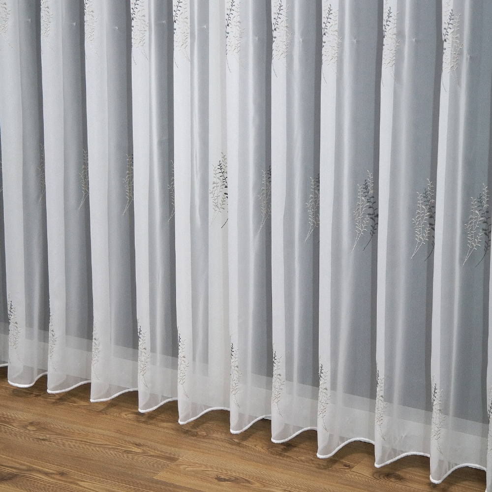 Unsere Store-Meterware Grimma ist eine weiße Grundware aus luftigem Voile. Material: 100 % Polyester . Die Breite eines Rapports beträgt ca. 32,4 cm. Die Gesamt-Höhe beträgt ca. 290 cm und kann individuell von oben gekurzt werden. Dabei ist zu beachten, dass sich die gestickten Elemente in einem Abstand von jeweils ca. 42 cm von vorher. Wir empfehlen ein 5er-Faltenband im Verhältnis 1:2,5 zu verwenden. Sie berechnen Ihren Stoffverbrauch, indem Sie Ihre Fensterbreite mit dem Verhältnis Ihres Faltenbandes multiplizieren. Beispiel: zu bedeckende Fensterbreite 2,00 m = Stoffverbrauch 5,00 m (2 x 2,5 bei Verwendung eines Faltenbandes im Verhältnis 1:2,5). Sollte eine andere individuelle Raffung gewünscht sein, muss der Stoffbedarf entsprechend angepasst werden. Bitte bestellen Sie Ihre individuell benötigte Menge in vollen Metern.