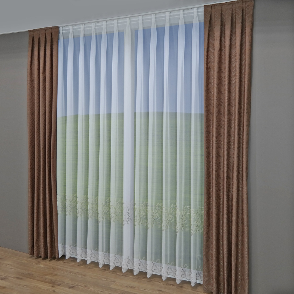 Beispiel: zu bedeckende Fensterbreite 2,00 m = Stoffverbrauch 5,00 m (2 x 2,5 bei Verwendung eines Faltenbandes im Verhältnis 1:2,5). Sollte eine andere individuelle Raffung gewünscht sein, muss der Stoffbedarf entsprechend angepasst werden.