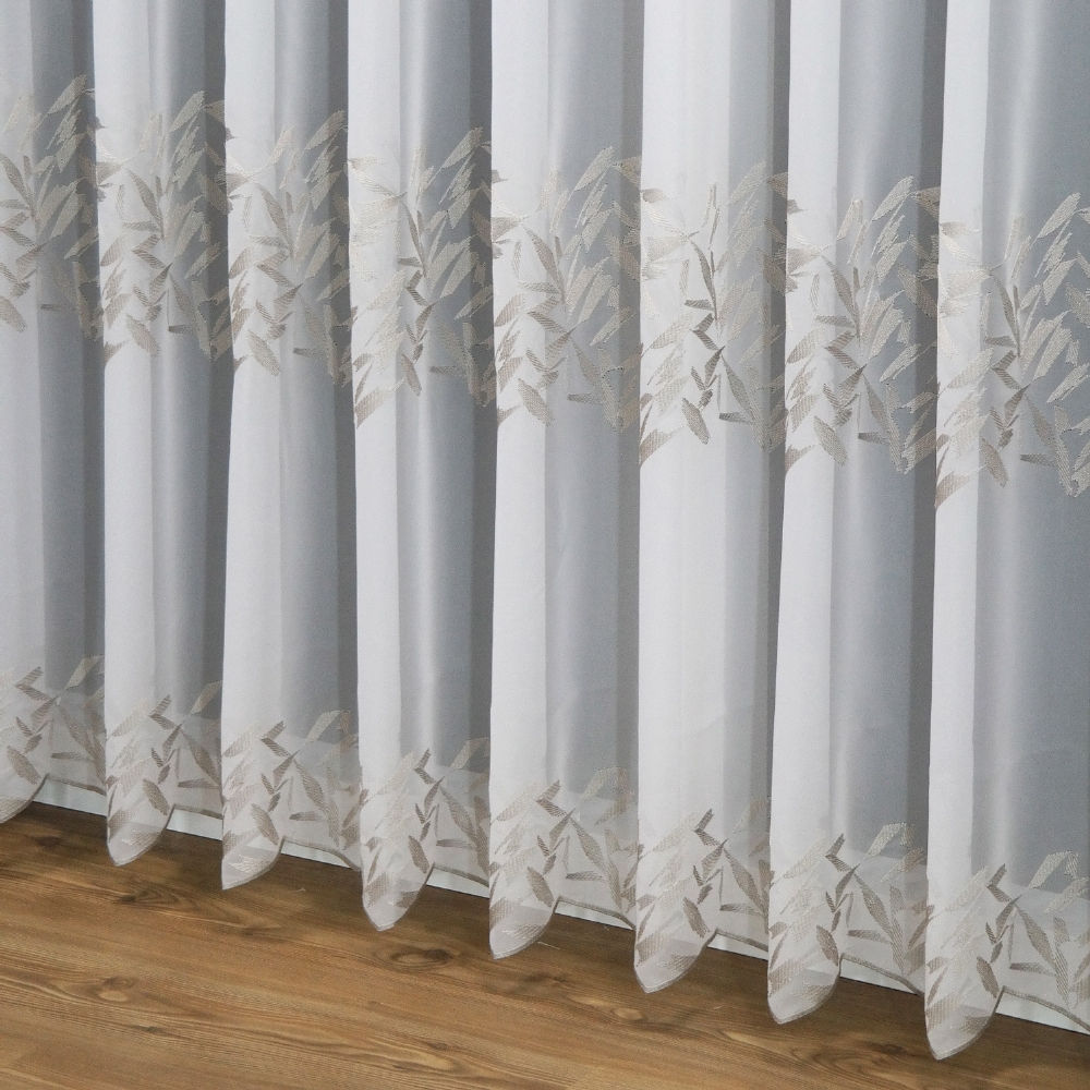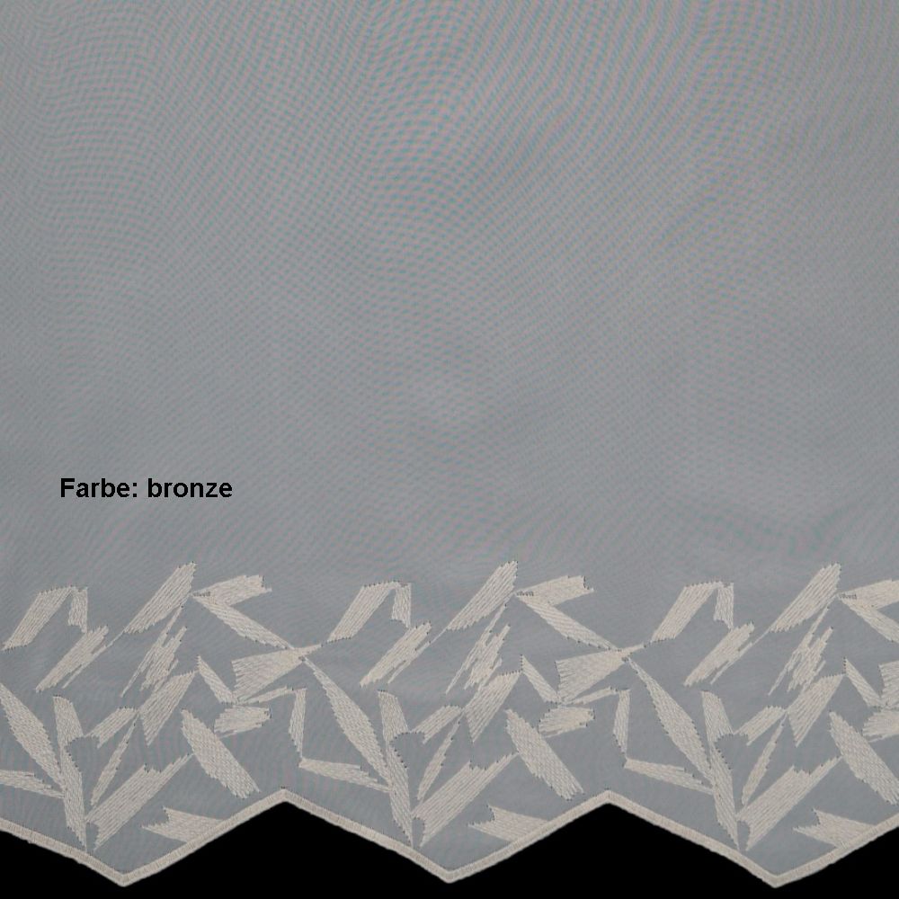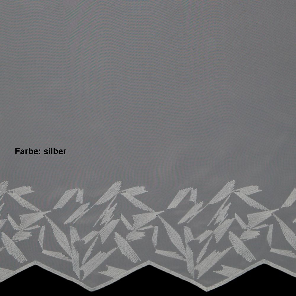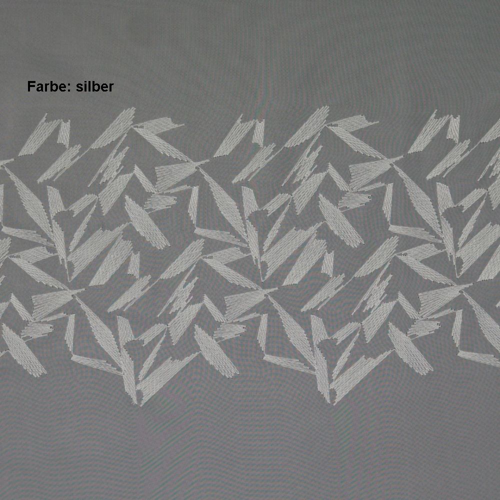 Die Meterware Crottendorf ist eine weiße, im grafischen Design bestickte Grundware aus luftigem Voile.